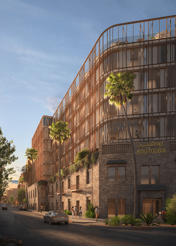 story hotel proposal harmoniously blends the charm of French colonial architecture with modern design. The ground level preserves the integrity of an old heritage French colonial structure, providing a solid, heavy base that anchors the building in its storied past. Rising above this foundation are five additional stories, where the architects employed art deco- inspired iron forging as a double skin facade. This design choice creates a striking contrast between the robust, grounded base and the lighter, more contemporary upper levels, giving the hotel a unique and elegant presence in the cityscape.